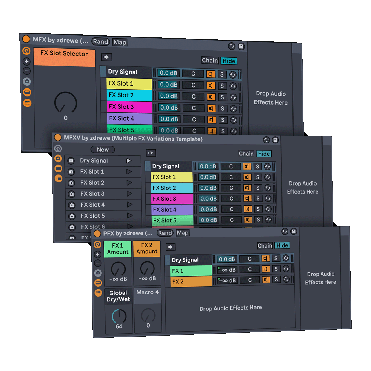 RBT includes 3 main building blocks for Ableton Racks. Everything is mapped and ready for you to just toss some effects and expand both instument and audio effect racks.